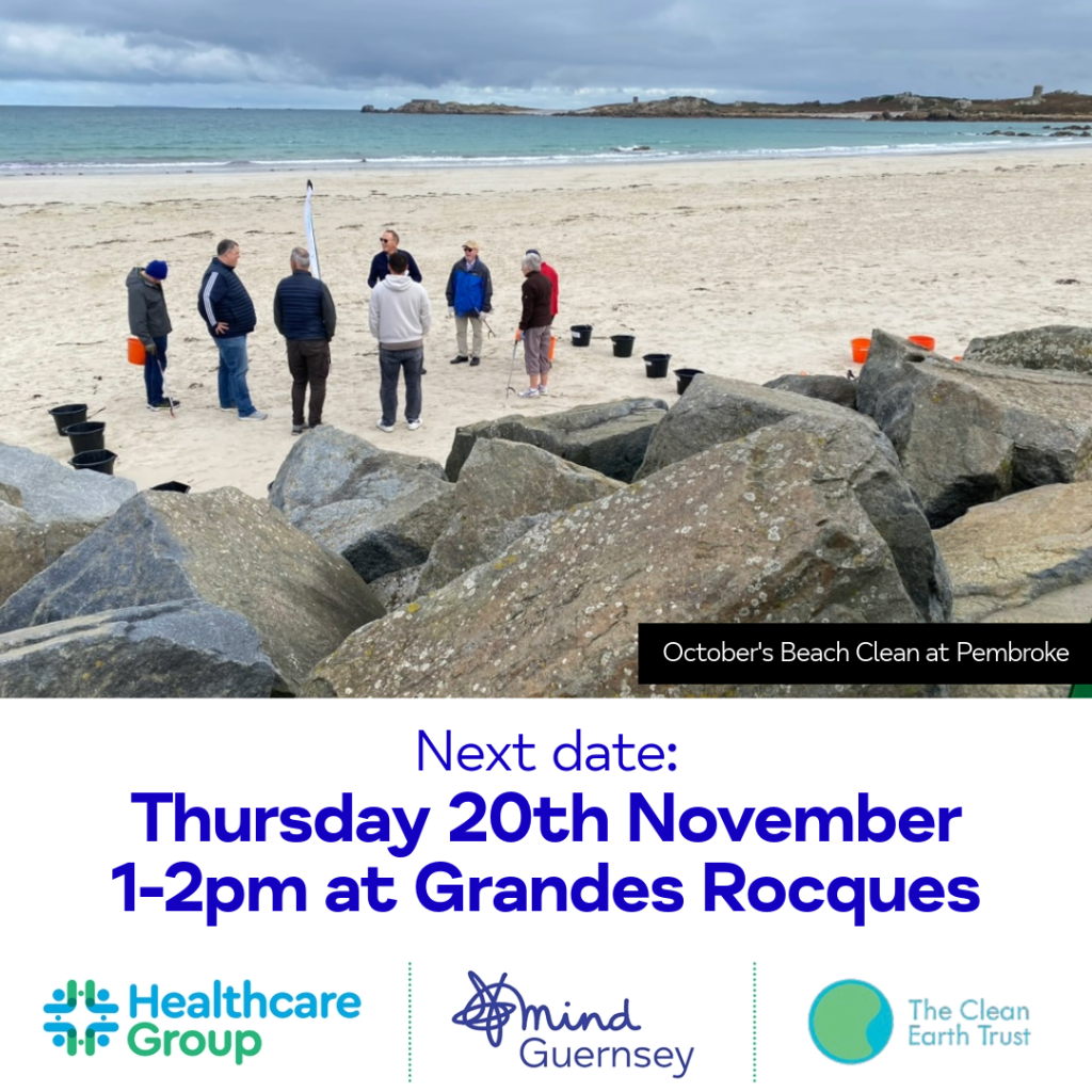 November’s Healthcare Group’s Wellbeing Beach Clean will be held at Grandes Rocques. We’ll meet on the beach near the kiosk.
