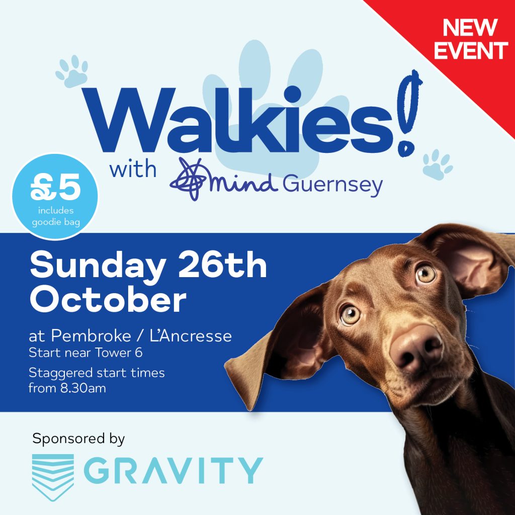 Guernsey Mind, supported by Gravity, would like to celebrate this by inviting local dogs and owners to join us for a fun, community event – Walkies with Guernsey Mind – while raising funds to support our vital work in mental health and wellbeing.